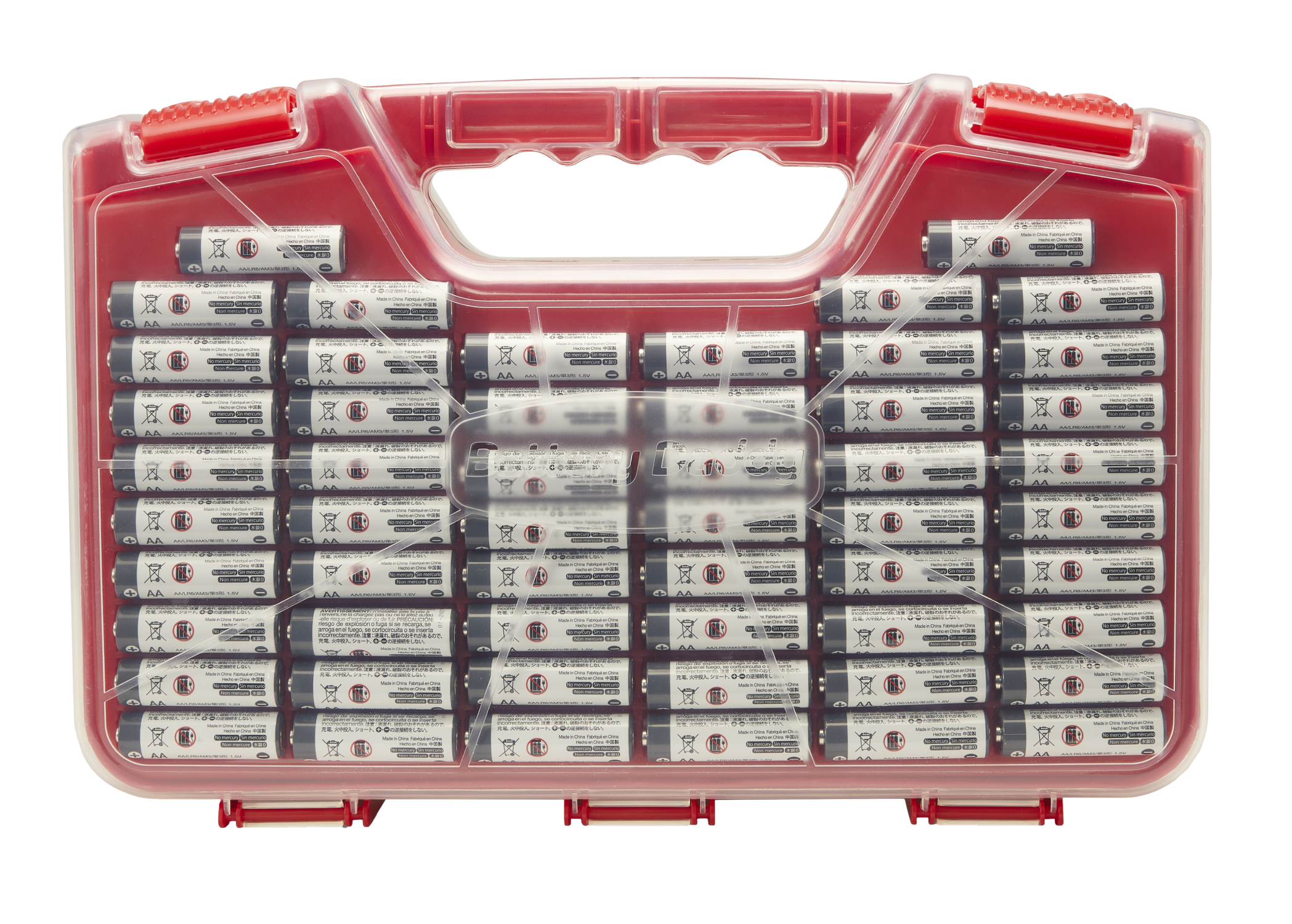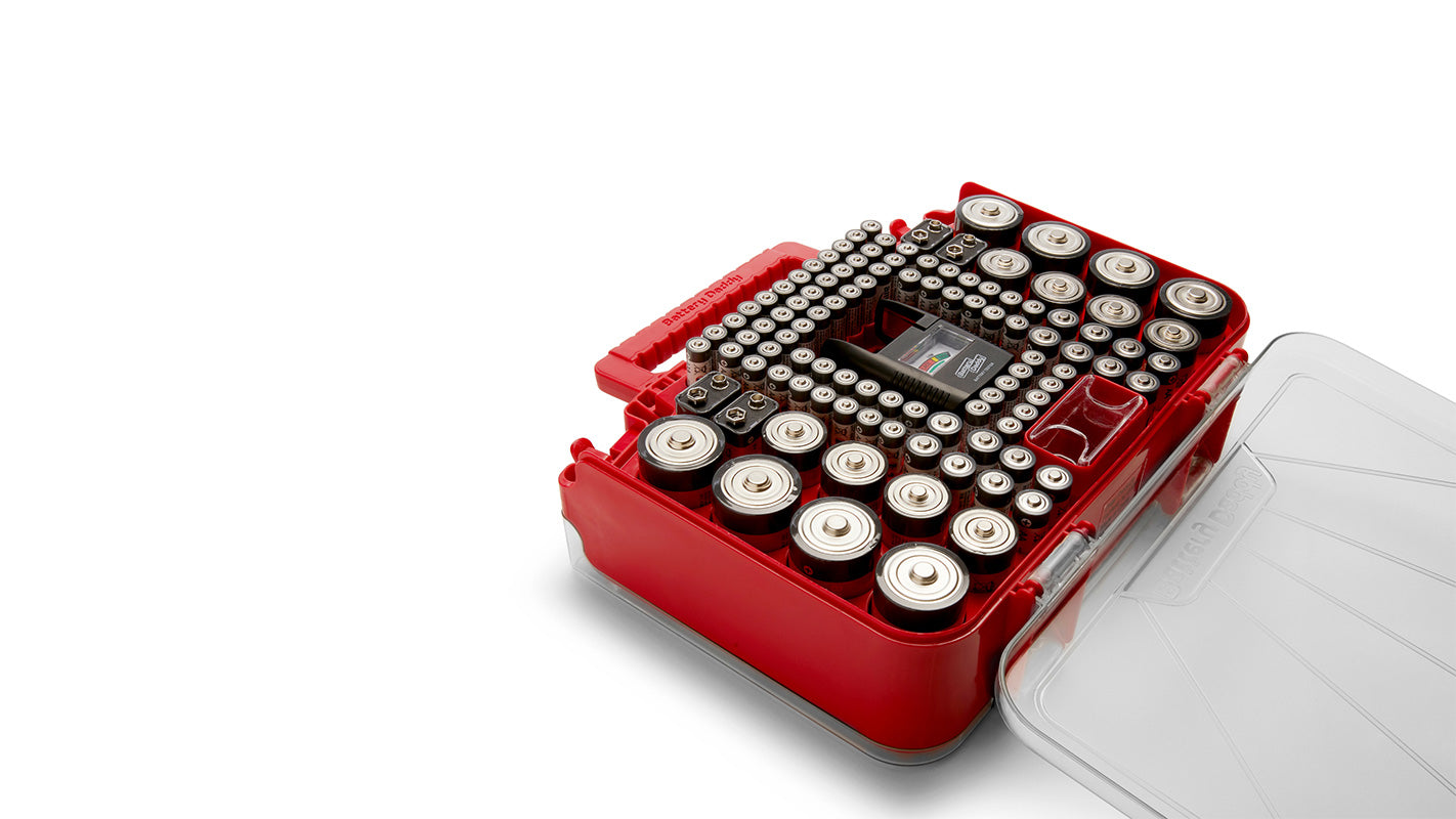 Forget flimsy bags and messy containers, you’ll never have to go searching again. The clear lid lets you see all your inventory, the customized slots keep your batteries powered up, and the handle allows you to take it anywhere!